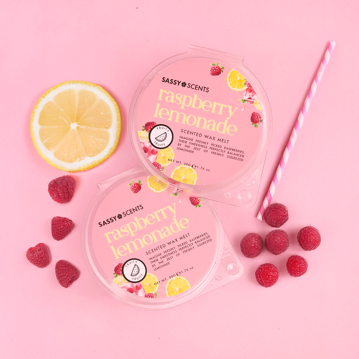 This Raspberry Lemonade wax melt has been specially created using our own original soy wax blend and the best quality concentrated sassy scents. Some of our wax melts contain essential oils to create the perfect blend of fragrance.