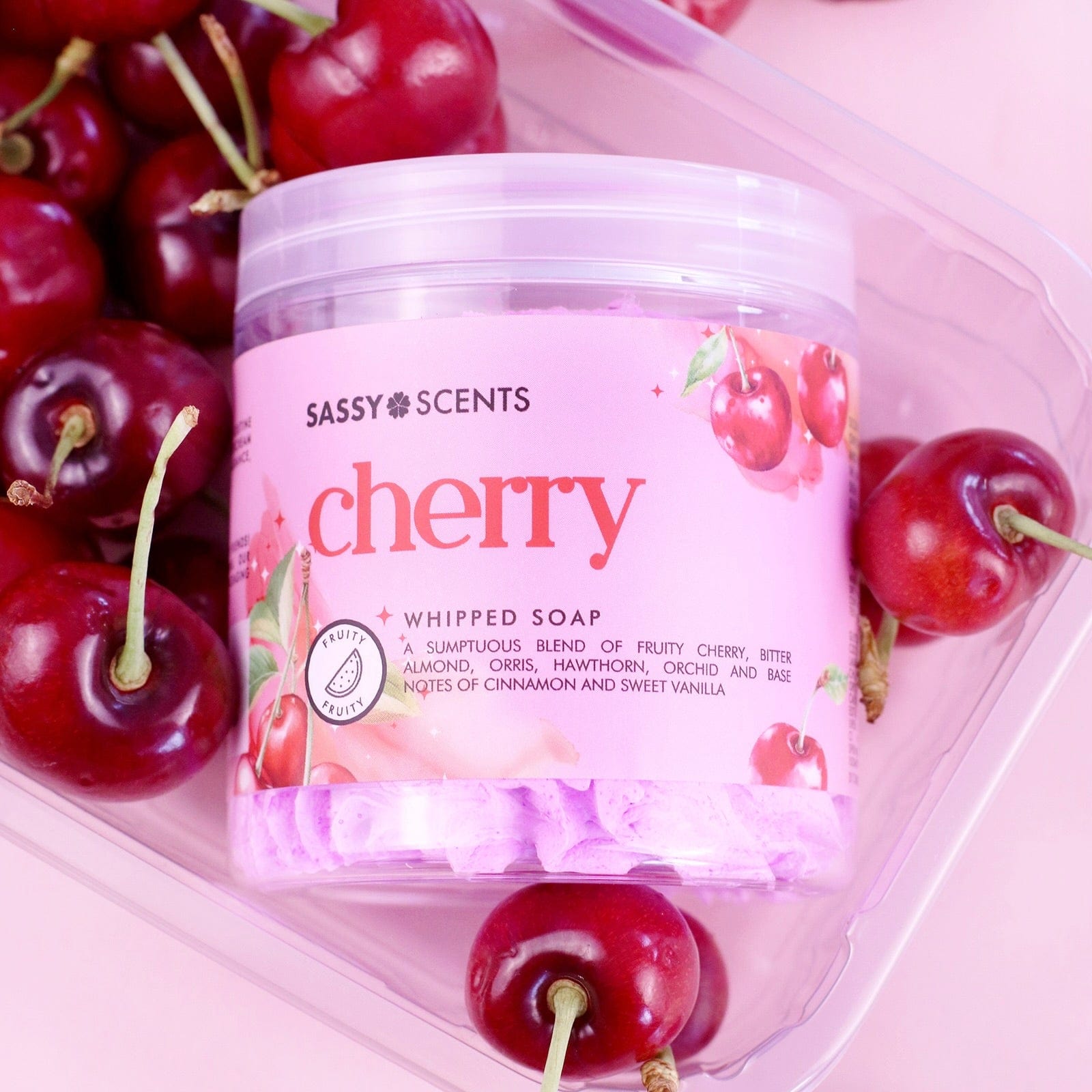This creamy Cherry Whipped Soap from Sassy Scents is infused with nourishing oils and cocoa butter to gently cleanse and hydrate your skin. The delightful blend of sumptuous fruity cherry, bitter almond, orris, hawthorn, orchid, and base notes of cinnamon and sweet vanilla.