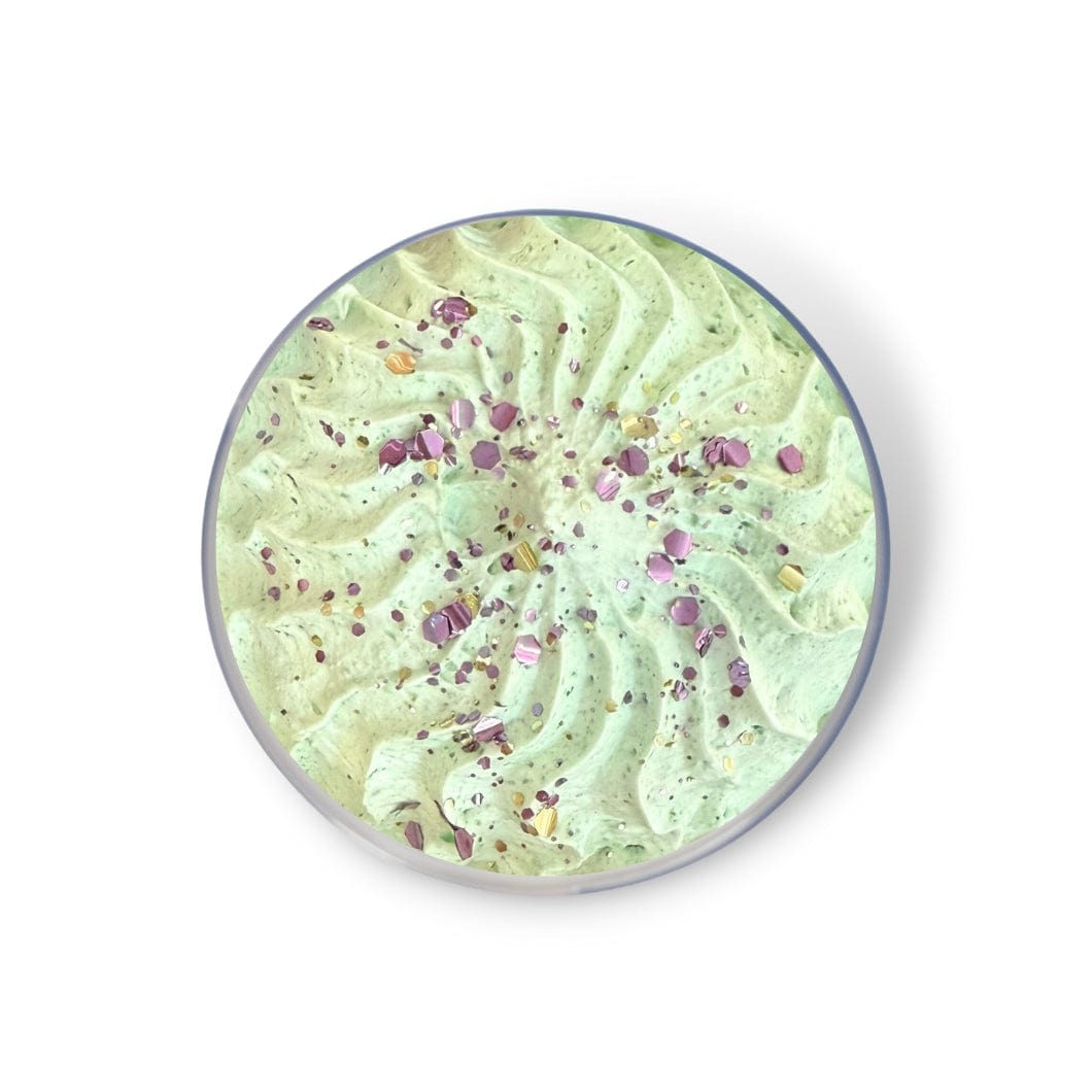 Gently scoop a thumb sized or generous amount of our whipped soap from the jar using your fingertips or a luscious bath sponge. Feel the cloud-like texture melt into your skin as you apply it in gentle circular motions. Let the buttercream lather envelop you, transforming your bathing routine into a sensorial journey.