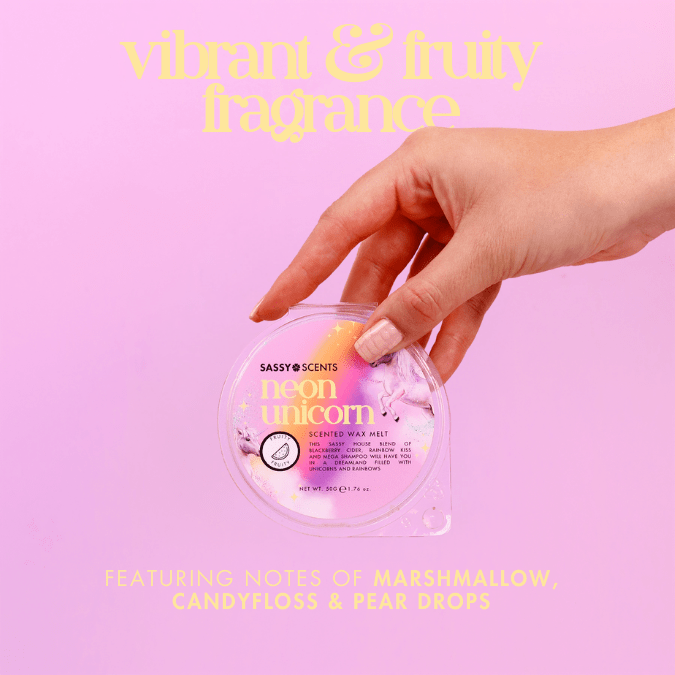 Indulge in the luxurious aroma of Neon Unicorn Wax Melt. Handcrafted in the UK, this vegan-friendly, soy blend wax melt offers a long-lasting fragrance. Sassy Scents: Unrivaled leaders in quality Wax Melts. Handcrafted for perfection, our eco-friendly, UK-made melts offer unparalleled aromas